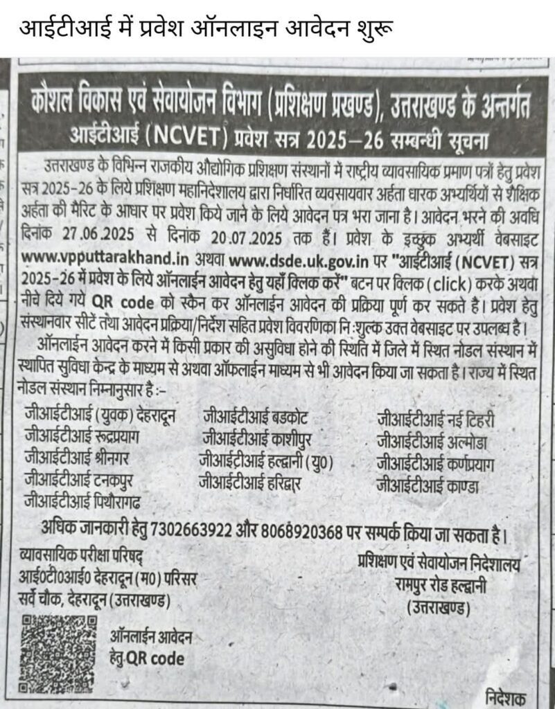 आई.टी.आई. सत्र 2025-26 में प्रवेश के लिए ऑनलाइन आवेदन करें